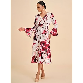 Dam Vardagsklänning Vit Långärmad Kort ärm Geometrisk Slå in Sommar Vår Alla årstider V-hals Rund hals Elegant Modern XS S M