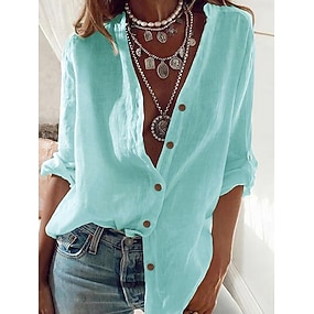 Dam Skjorta Knappar Ensfärgat Vintage Stylish Grundläggande Långärmad Tröjkrage Vanliga toppar Dagligen Blå Svart Rodnande Rosa Kaki Sommar Vår Höst
