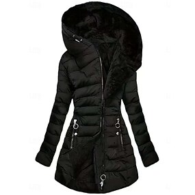 Dam Vinterkappa Vattentät Vindtät Ficka Pälskrage Dagligen Ledigt Normal Huva Normal Långärmad Ytterkläder Svart Brun Kaki Höst Vinter