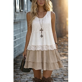 Dam Mini klänning Spetsklänning Solklänning Vit klänning Ledigt Semester Gata Helgdag Normal Ärmlös Rund hals Vit Sommar