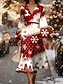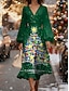 Jul kvinna julgran snöflinga midi-klänning A-linje klänning semester avslappnad fest daglig kvällsfest vanlig passform grafisk långärmad V-hals vinröd beige höst vinter