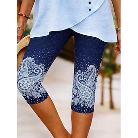 Dam Capribyxor Kinesiska Damasker Semester Vintage Streetwear Vadlängd Hög midja Blommig Grafisk Tryck Mönster Komfort Mjuk Bekväm Elastisk Dagligen Utomhus Semester Blå Sommar Vår Smal passform