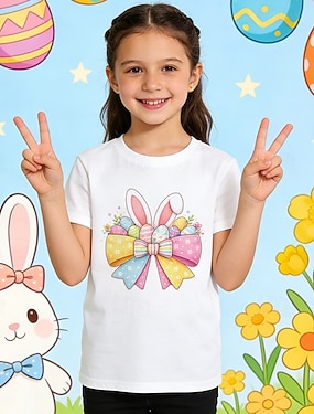 100 % bomull Påsk Barn Flickor Vit Kanin T-shirt Rund hals Kortärmad Semester Sport & Utomhus Vardag Semester Mode Ledigt Tryck Sommar Vår