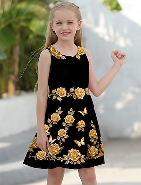 Flickor 3D Blommig Festklänning Ärmlös 3D-tryck Sommar Vår Höst Semester Fest Speciellt Tillfälle Elegant Prinsessa Skön Barn 3-12 år Festklänning Swingklänning A linjeklänning Ovanför knäet Normal