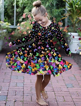 Flickor 3D Grafisk Fjäril Klänning Långärmad Sommar Vår Semester Dagligen Helgdag Prinsessa Skön Ljuv Barn 4-12 år Vardagsklänning A linjeklänning Knälång Normal