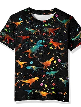 Pojkar 3D Dinosaurie T-shirt Kortärmad Sommar Vår Mode Grundläggande Barn 4-12 år Rund hals Utomhus Ledigt Dagligen Normal