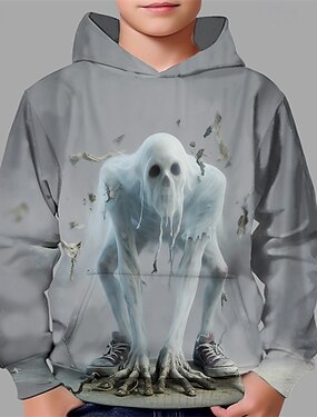 Halloween Pojkar 3D Dödskalle Huvtröja Långärmad Vår Höst Mode Streetwear Barn 4-12 år Huva Utomhus Ledigt Dagligen Normal
