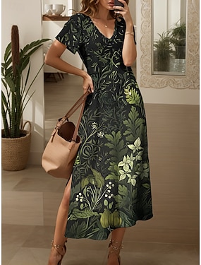 Dam Maxiklänning Vardagsklänning A linjeklänning Sommarklänning Elegant Semester Ledigt Strand Normal Blommig Grafisk Prickig Kortärmad V-hals Blå Rubinrött Brun Grön Sommar Vår