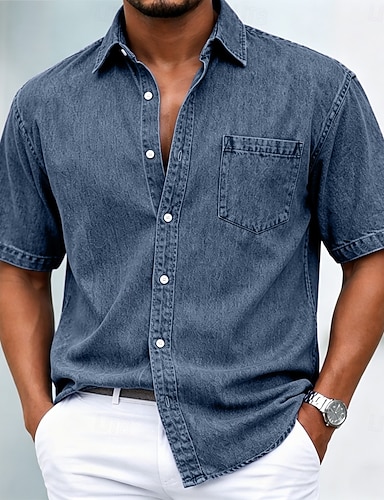 Herr Jeansskjorta Pikétröja i bomull Ledigt Klassisk Kortärmad Mode Grundläggande Ensfärgat Vintagestil Knappar Sommar Vår Vår & Höst Normal Svart Ljusgrön Rodnande Rosa Marinblå Mörkgrön Purpur