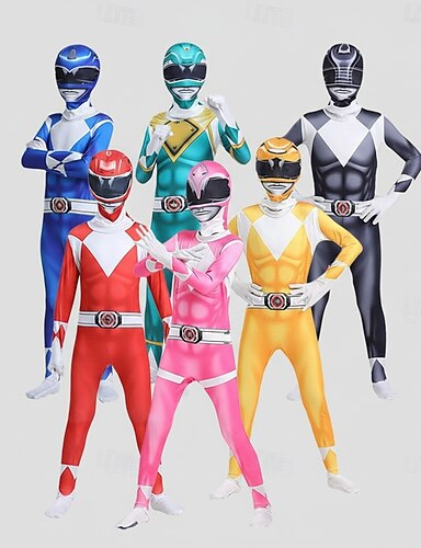 Mäktiga hjältar Tommy Oliver Cosplay-kostym Jumpsuit Cosplay Halloween for Herr Dam Pojkar Barn Vuxna Halloween Karnival Maskerad