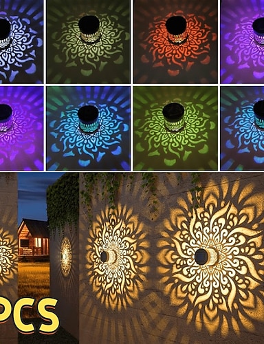 4 st utomhus solcellsdrivna ihåliga metallmandalaprojektionsvägglampor, IP44 vattentäta, staket, trappa, gräsmatta, gångväg, trädgård, gård, villalandskapslampa
