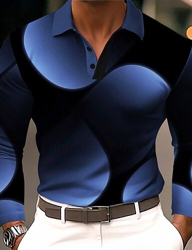 Herr Abstrakt Geometrisk Polo Långärmad Polotröjor Kavajslag Business Casual Fritids- Dagliga kläder 3D-utskrift Knappar Vår Höst Vinter Gul Rodnande Rosa Blå