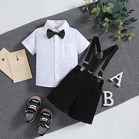 Pojkar 3D Ensfärgat Skjorta och shorts Kortärmad Sommar Mode Dagligen Småbarn 1-5 år Rund hals Årsdag Födelsedag Lös passning