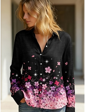 Dam Skjorta Boho skjorta Konstbomullslinne Knappar Mönster Blommig Grafisk bohemliv Aktiv Ledigt Långärmad Tröjkrage Långa toppar Dagligen Helgdag Purpur Sommar Vår Höst