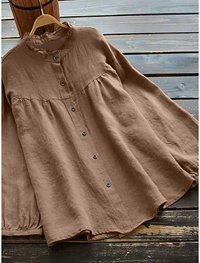 Dam Skjorta Linneskjortor i bomull Blus Konstbomullslinne Knappar Slät Stylish Klassisk Modern Långärmad Hög krage Vanliga toppar Dagligen Helgdag Utekväll Svart Purpur Kaki Sommar Vår