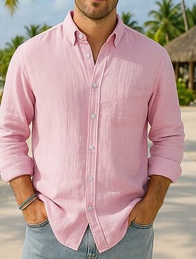 Herr Linneskjorta i bomull Enfärgad / vanlig färg Semester Svart Vit Rodnande Rosa Mörk marin Långärmad Kavajslag Kläder Button-Down