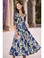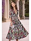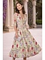 A-linje Golvlång Bröllopsgästklänning Formell klädsel Derbyklänning Klänning till brudens mor 3/4 ärm V-hals Tröjkrage Elegant Formell Helgdag Kentucky Derby Satäng med Bälte / band Rosett(er) Tryck