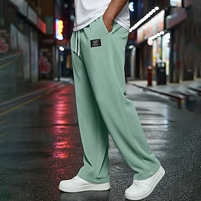 Herr Våffelstruktur Joggingbyxor Långbyxor Säckiga byxor Träningsbyxor med raka ben Snörning Elastisk midja Ensfärgat Komfort Fullängd Dagligen Utomhus Streetwear Semester Mode Blå Svart Elastisk