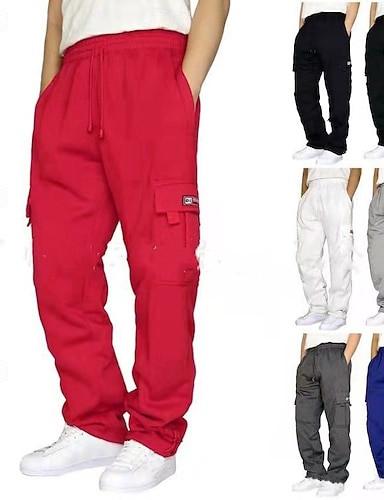 Herr Militärbyxor Joggare Långbyxor Elastisk midja Snörning Flera fickor Le ansikte Bärbar Utomhus Dagligen Camping och vandring Mode Klassisk Svart Vin