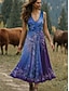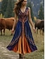Dam Maxiklänning Boho-klänning Skjortklänning Solklänning Elegant bohemliv Etnisk Strand Helgdag Normal Grafisk Geometrisk Ärmlös V-hals Blå Orange Sommar Vår