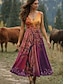 Dam Klänning Set A linjeklänning Elegant Semester Blommig Grafisk Multi lager Mönster Midiklänning 3/4 ärm Rund hals Dagligen Semester Rodnande Rosa Purpur Grön Sommar Vår Normal