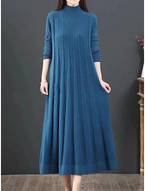 Dam Tröja klänning Elegant Ledigt Mjukt Ren färg Ribbad Polokrage Stickat Långärmad Långa toppar Sticka Utomhus Dagligen Helgen Blå Svart Höst Vinter