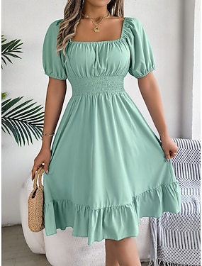 Dam Mini klänning A linjeklänning Sommarklänning Ledigt Dagligen Normal Slät Kortärmad Fyrkantig hals Blå Svart Rodnande Rosa Ljusbrun Sommar