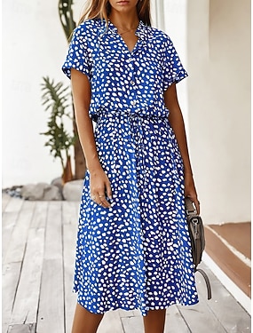 Dam Mini klänning Sommarklänning Semester Ledigt Boho Dagligen Strand Normal Grafisk Prickig Kortärmad Kavajslag Blå Ljusgul Rodnande Rosa Sommar Vår