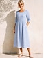 Dam Midiklänning Vardagsklänning Randig klänning A linjeklänning Elegant Mode Klassisk Dagligen Semester Normal Randig 3/4 ärm Rund hals Blå Grön Grå Sommar Vår