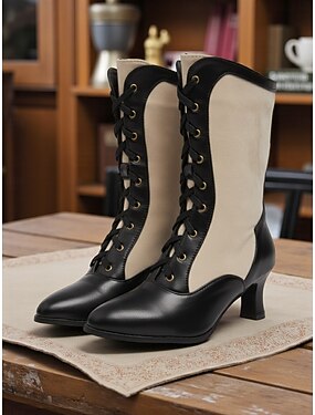 Damskor i edwardiansk vintagestil med snörning från 1900-talet – tvåfärgade viktorianska kostymskor med klack för historiska återuppsättningar, teater och steampunk-cosplay
