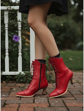 ankelboots för kvinnor i viktoriansk stil med spetsdesign och konstläderaccenter – vintage skor med snörning för vardagliga tillfällen och kostymtillfällen