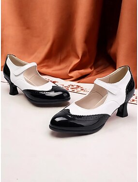 Kvinnors vintage Gatsby röda och vita Mary Jane heels - Klassiska 1920-tals inspirerade brogue skor för retro mode dans och speciella tillfällen