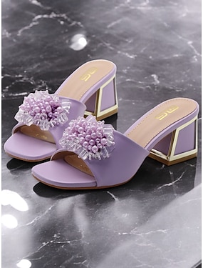 lila damsandaler med pärl- och pärlutsmyckningar – fashionabla chunky hälmulor för avslappnade utflykter och kvällsevenemang
