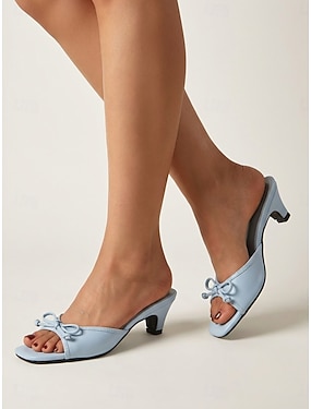 Eleganta sandaler med öppen tå och rosett för dam i elegant babyblått – eleganta sandaler med kitten heel för vardagsbruk i fransk stil och sommarsemester