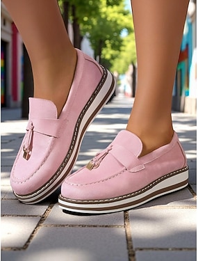 Damernas faux mocka plattform loafers med tofsdetalj – Trendig och modeinspirerad stil för avslappnade kontorsdagar och dagliga utflykter