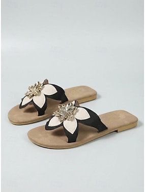 damsandaler med blomsterdekorationer, bekväma slip-on-skor för avslappnade utflykter, parkpromenader och stranddagar
