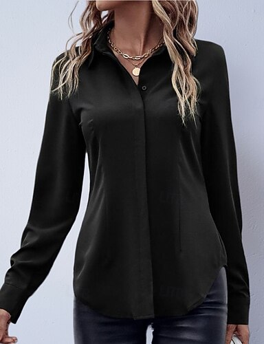 Dam Skjorta Satinblus Knapp upp skjorta Ensfärgat Slät Elegant Mode Ledigt Långärmad Nedvikt Vanliga toppar Dagligen Kontor Arbete Svart Rodnande Rosa Rubinrött Purpur Brun Sommar Vår Höst Vinter