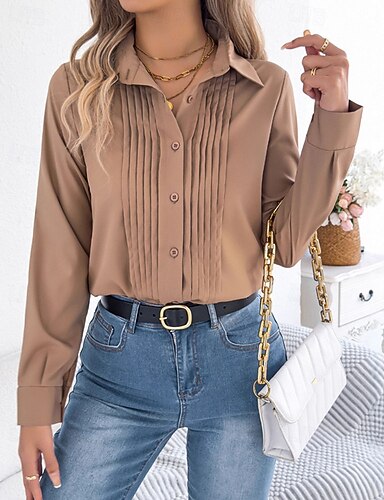 Dam Skjorta Button Down skjorta Casual skjorta Knappar Slät Stylish Klassisk Ledigt Långärmad Tröjkrage Vanliga toppar Dagligen Helgdag Utekväll Vit Kaki Vår Höst