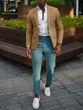 Herr Kavajjacka Linne blazer Naggkrage Mode Ledigt Solid färg Blå 다크 카키 Svart Skräddarsydd passform Enkelknäppt tvåknappar