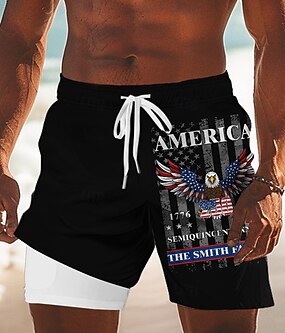 Herr 4 juli USA:s 250-årsjubileum Örn USA: s flagga Fodrade shorts 2 i 1 simshorts Badshorts Medium Midja Patriotisk Helgdag Sidfickor Med kompressionsfoder Elastisk dragsko i midjan Designer Kläder
