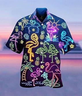 Herr Tropisk Självlysande Skjorta Hawaii skjorta Lägerskjorta Kortärmad Skjorta Nedvikt Mode Hawaiisk Designer Gata Ledigt Dagligen Gul Rubinrött Ljuslila 3D-tryck S M L