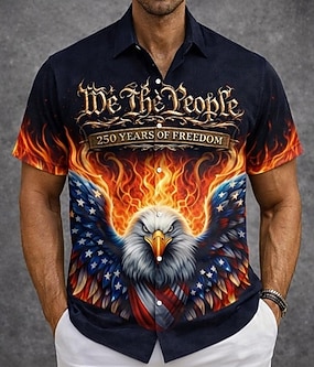 Herr 4 juli USA:s 250-årsjubileum USA: s flagga Vi folket Skjorta Sommarskjorta Knapp upp skjorta Kortärmad Patriotisk Utomhus Helgdag Sommar Vår Nedvikt 3D-utskrift krage skjortor Främre en ficka