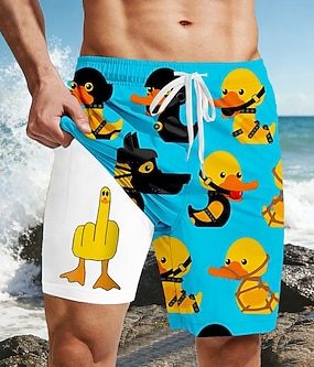 Herr Tecknat Anka Långfinger Fodrade shorts 2 i 1 simshorts Badshorts Medium Midja Hawaiisk Rolig Strandsemester Sidfickor Med kompressionsfoder Elastisk dragsko i midjan Designer Kläder