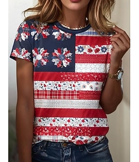 Självständighetsdag Patriotisk Dam T-shirt Grafisk Flagga Flagga Vintage Stylish Klassisk Kort Ärmand Rund Hals Regulaära Toppar Daglig Helg Print Vit Röd Sommar Vår