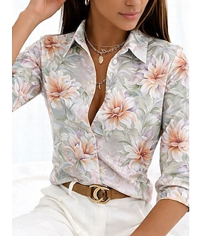 Dam Skjorta Knappar Mönster Grafisk Geometrisk Abstrakt Vintage Stylish Modern Långärmad Tröjkrage Vanliga toppar Dagligen Blå Purpur Grön Beige Vår Vinter