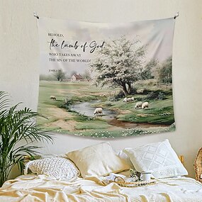 Se Guds lamm som tar bort världens synd Johannes 1 29 kristen skrift bibelvers får vitt träd pastoralt landskap väggtapet sovrum vardagsrum religiös gåva bakgrund