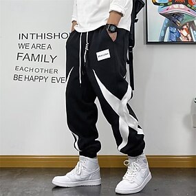 Herr Atletiska byxor Joggingbyxor Joggare Långbyxor Ficka Elastisk midja Snörning Färgblock Komfort Utomhussport Dagligen Mode Ledigt Svart Microelastisk
