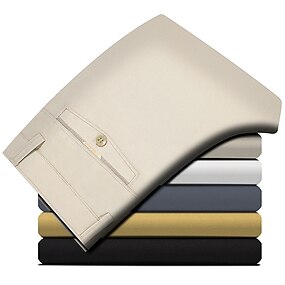 Herr Studenten Kostymbyxor Långbyxor Kinesiska Knappar Ficka Slät Komfort Formell Fest Arbete Mode Klassisk Stil Svart Vit Microelastisk