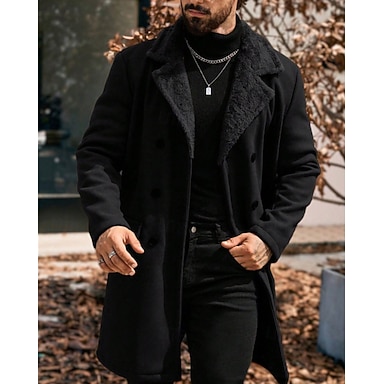 Herr Rock Trenchcoat Lång trenchcoat Semester Dagligen Höst Vinter Polyester Håller värmen Vindtät Ytterkläder Kläder Mode Klassisk Slät Ficka Kavajslag Enkelknäppt