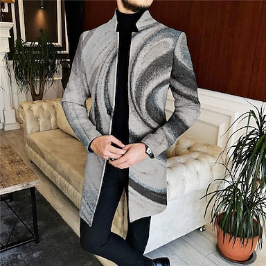 Herr Geometri Vinterkappa Rock Kappa Håller värmen Bekväm Andningsfunktion Vintage Affär Arbete Klä till Jobbet Utekväll Knappar Mönster Höst vinter Kinakrage Långärmad Svart Grå